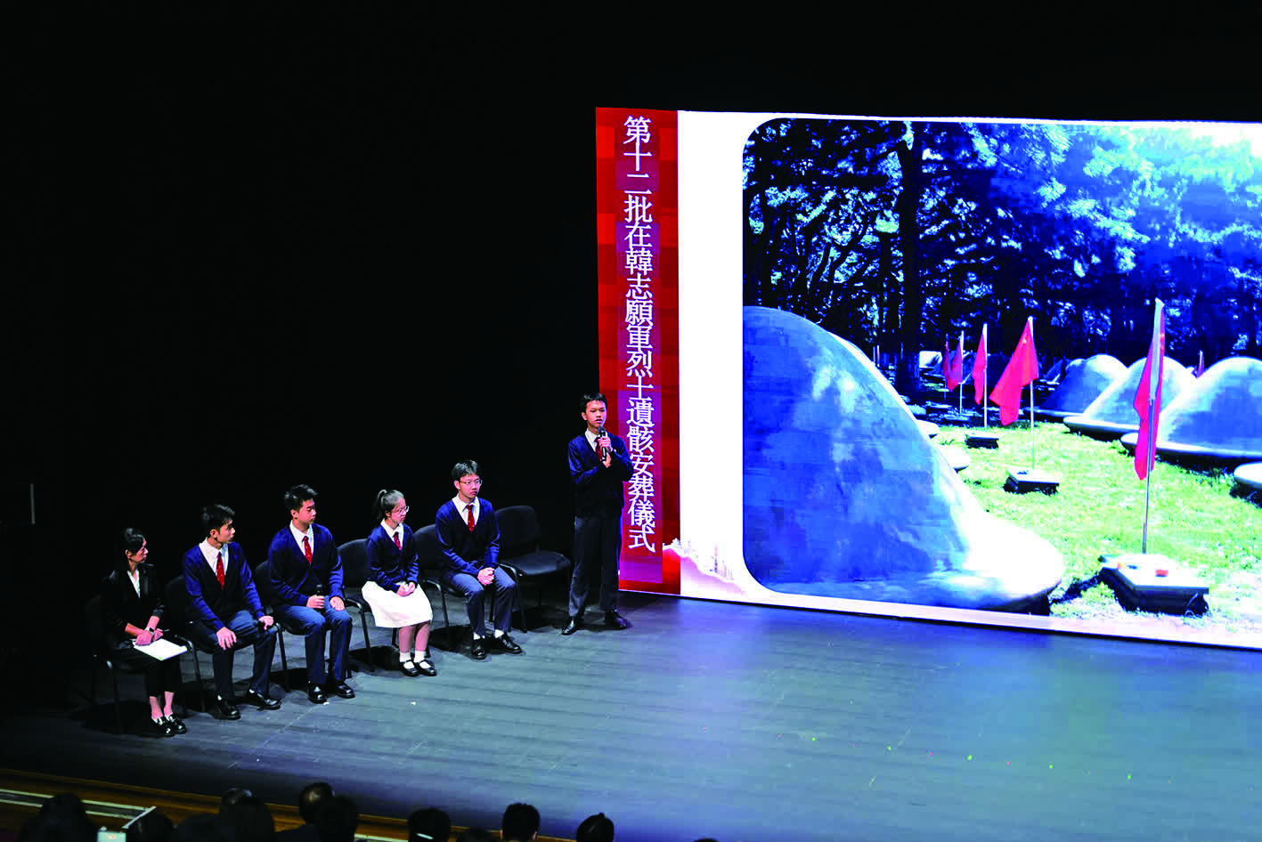 同場另有參與第十二批在韓中國人民志願軍烈士遺骸回國儀式的師生代表團,以“以吾輩之聲,訴英烈歸途”為題,分享參與愛國主義教育活動的感受。為銘記抗戰歷史、弘揚和傳承不屈不撓的民族精神和愛國精神,應國務院港澳事務辦公室的邀請,特區政府組織澳門師生代表團於9月9日至14日前往北京、丹東及瀋陽,參與第十二批在韓中國人民志願軍烈士遺骸回國相關儀式及愛國主義教育活動。本次活動於9月10日在北京啟動,澳門師生代表團首先參觀了中國人民抗日戰爭紀念館,重溫民族抗戰歷程,進一步加深了師生們對這段歷史的認識,緬懷先烈功績。翌日,前往遼寧丹東,參與在鴨綠江“歸航號”紀念船上舉行的第十二批在韓中國人民志願軍烈士遺骸歸國安葬丹東市紀念活動花瓣祭奠儀式,播撒花瓣寄託哀思及對英烈致崇高敬意。並參觀了鴨綠江斷橋,向英雄群像敬獻鮮花。隨後,參觀丹東抗美援朝紀念館,進一步了解志願軍戰士的英勇事跡。